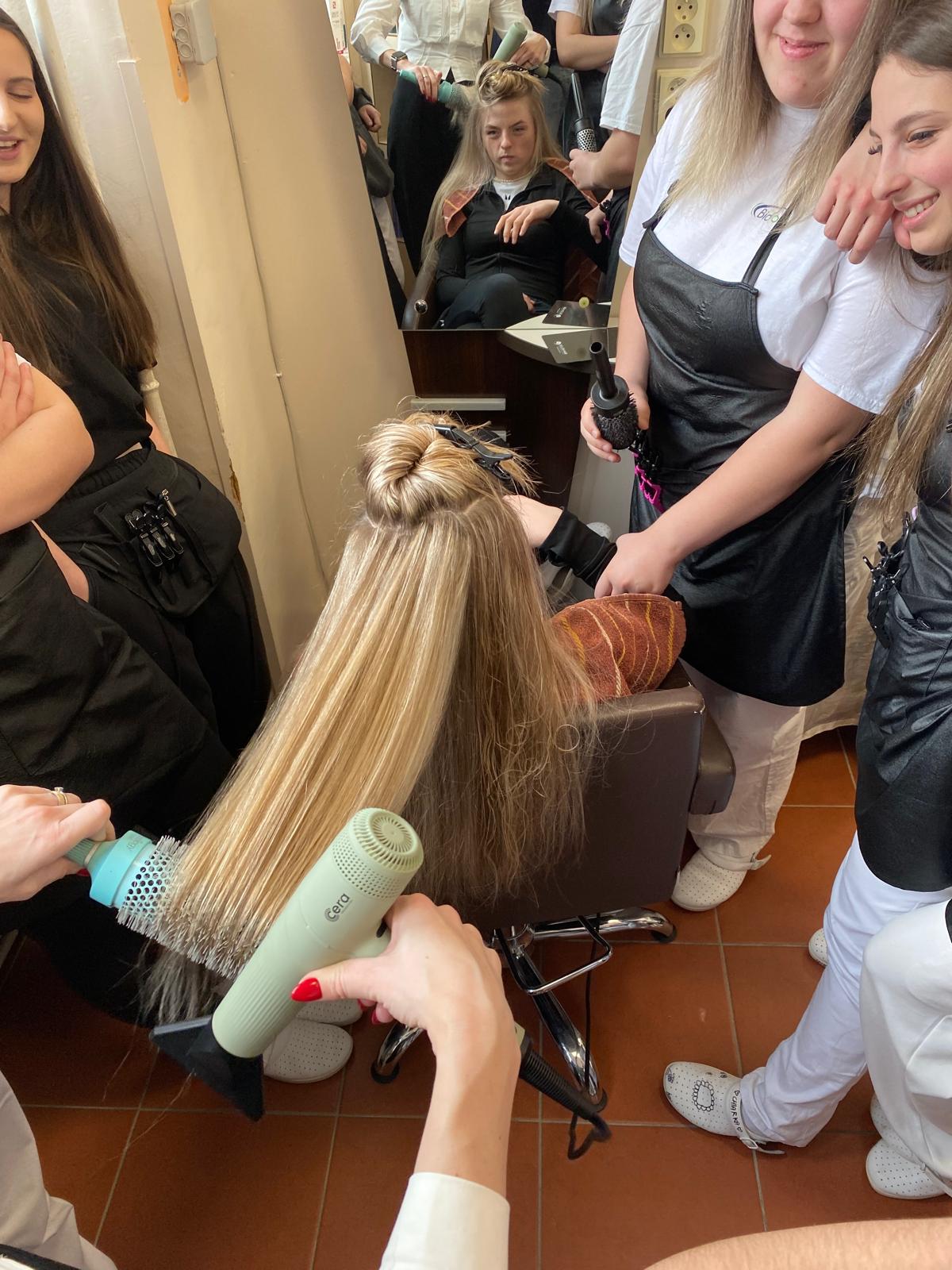 Počas školenia traja skúsení školitelia predviedli názorné praktické ukážky, pričom zdôraznili najmä šetrný prístup k vlasom s cieľom dosiahnuť ich zdravý vzhľad, prirodzený lesk a profesionálnu konečnú úpravu účesu.